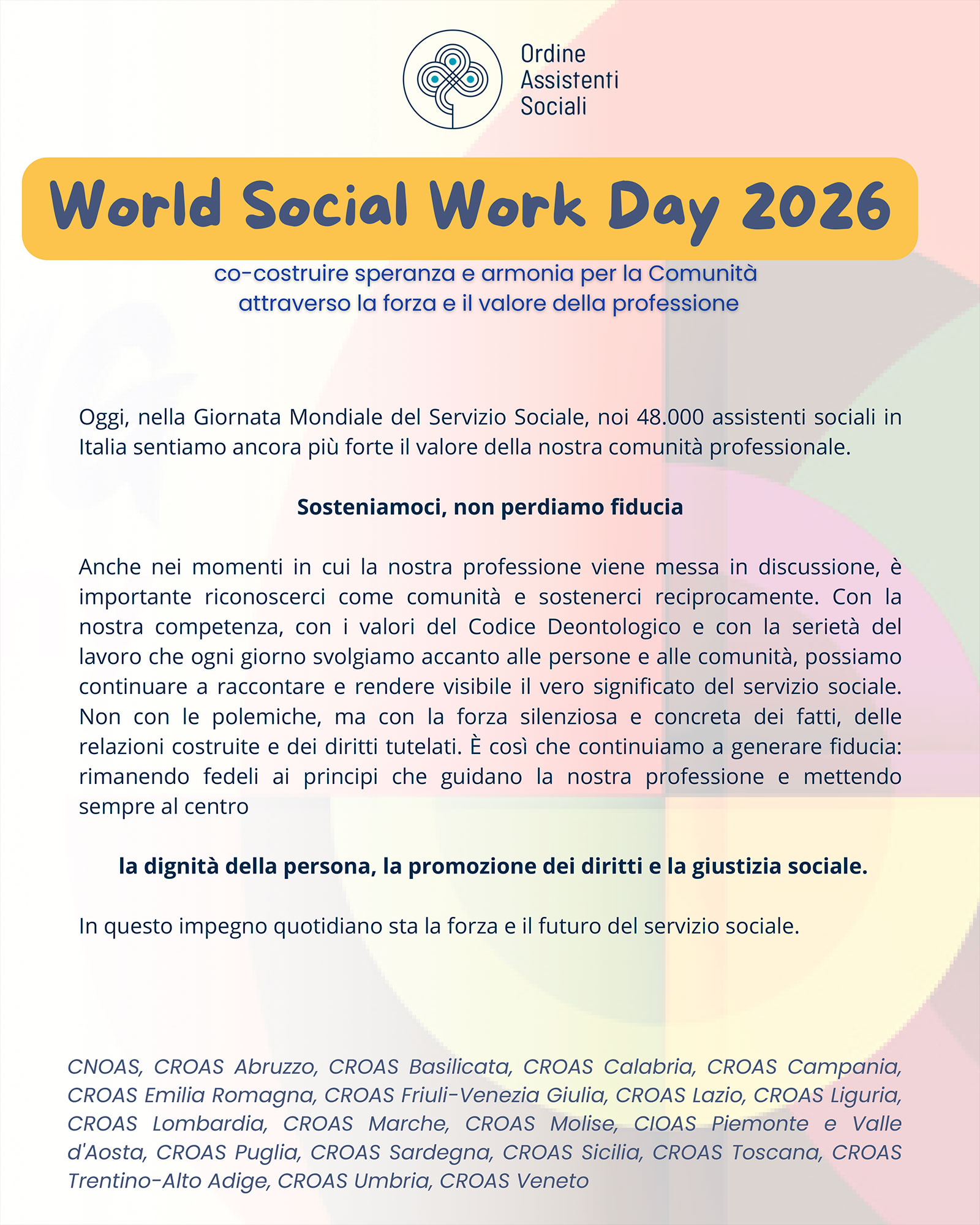 A seguito dell’evento organizzato in occasione del World Social Work Day, il Consiglio dell’Ordine ha ritenuto opportuno condividere una riflessione...